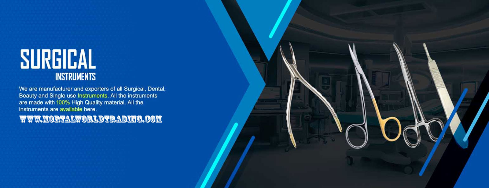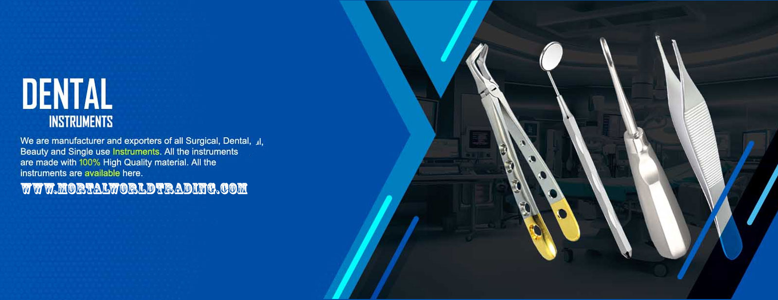 Mortal World Trading is a leading manufacturer and exporter of high-quality surgical instruments. With a strong commitment to excellence and innovation, we serve clients around the world by delivering products that combine performance, durability, and precision. We specialize in a wide range of products, including: • Surgical Instruments: Premium-quality dental, surgical, beauty, and veterinary instruments, crafted with precision and care. Our mission is to provide superior products that meet international standards while ensuring customer satisfaction through reliability, innovation, and continuous improvement. At Mortal World Trading, quality is our top priority. Every item we produce undergoes strict quality control and is made using the fines...